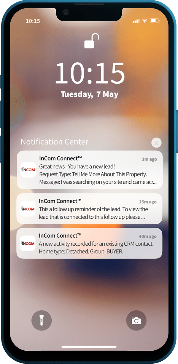 Equip your team with the powerful capabilities of the InCom desktop CRM, now accessible right in the palm of their hands. Both agents and brokerage staff can benefit from features like mass messaging (text and email), an auto-dialer, and lead management. They’ll stay updated with lead notifications, automatically log calls and emails, maintain detailed client interaction records, and efficiently manage tasks to drive greater productivity across the organization.