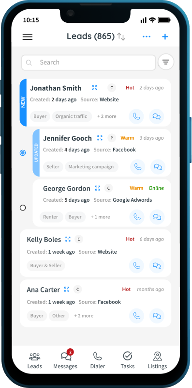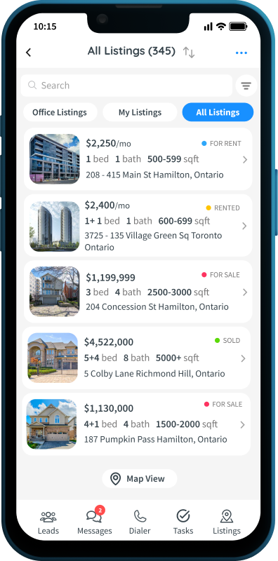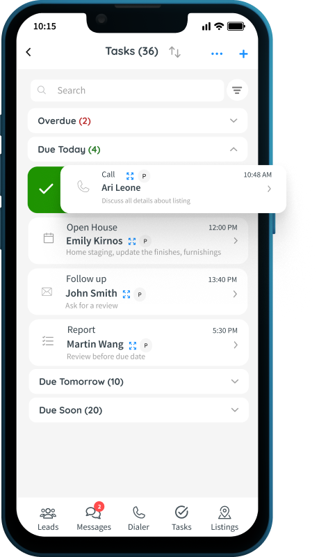 Access the capabilities of the InCom desktop CRM from the palm of your hand. Enjoy features like mass messaging (text and email), an auto-dialer, and lead management. Stay updated with lead notifications, automatically log calls and emails, maintain detailed records of client interactions, and manage your tasks efficiently.