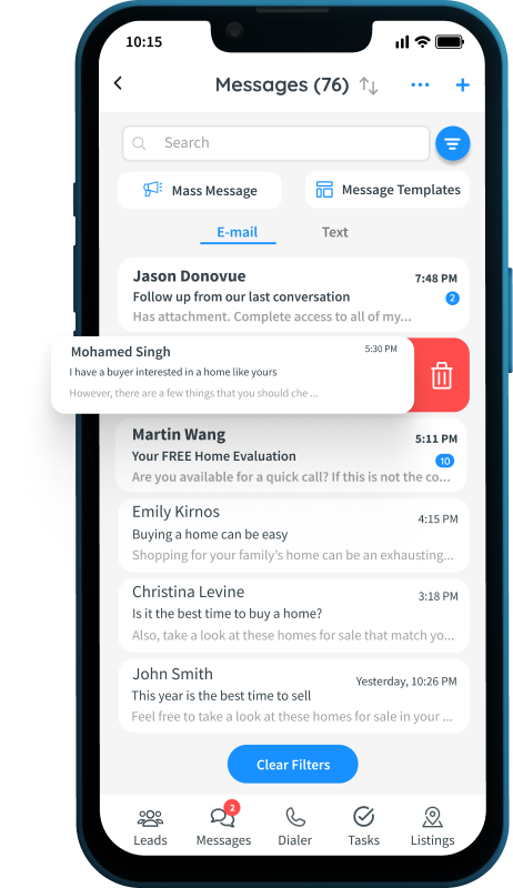 The mass messaging feature maximizes your outreach, allowing you to easily email or *text groups or individual prospects.