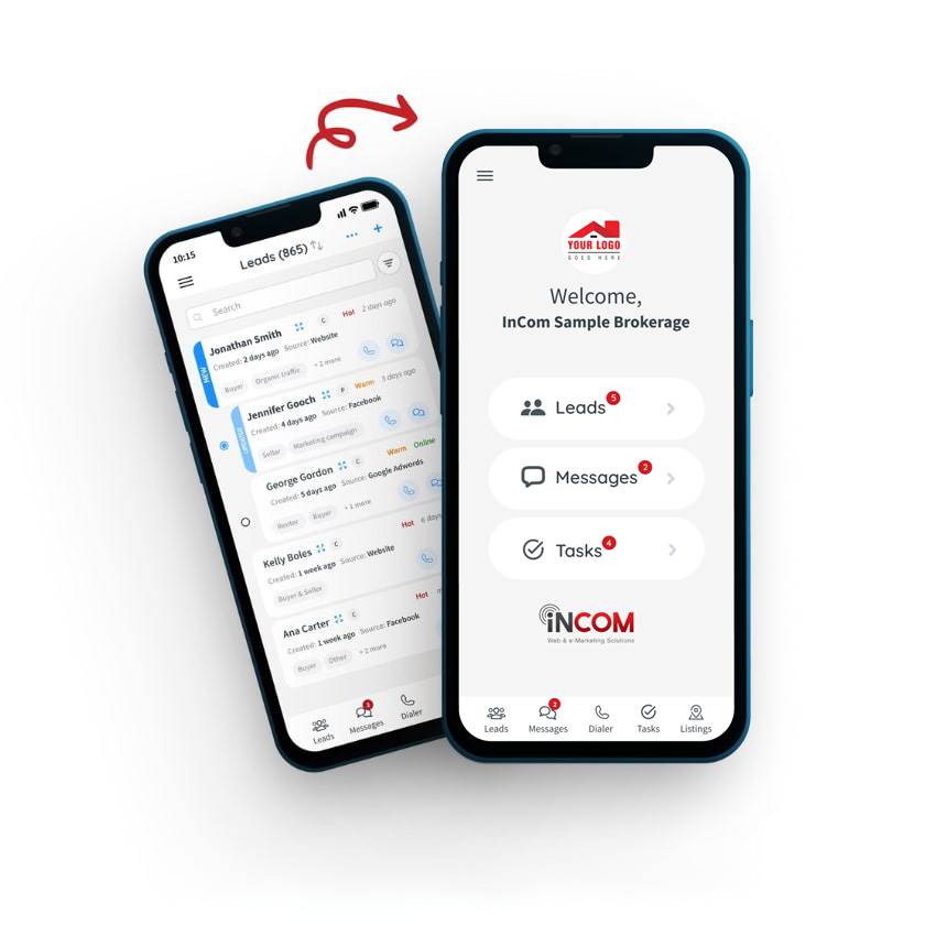 Equip your team with the powerful capabilities of the InCom desktop CRM, now accessible right in the palm of their hands. Both agents and brokerage staff can benefit from features like mass messaging (text and email), an auto-dialer, and lead management. They’ll stay updated with lead notifications, automatically log calls and emails, maintain detailed client interaction records, and efficiently manage tasks to drive greater productivity across the organization.