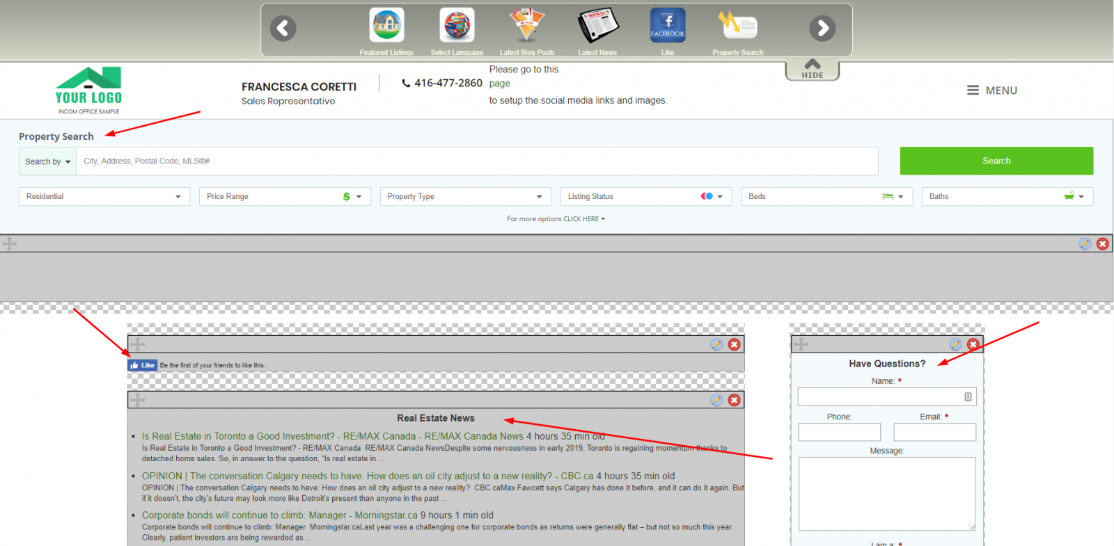 iNCOM has many different options to help increase user experience. Users can highlight key listings, send out daily email alerts or even attach social media posts by customizing your website to reflect who you are as a realtor. Add as many widgets as you want and move them around the page wherever you think will increase user interaction. If you have any questions our support team is always available to assist you.